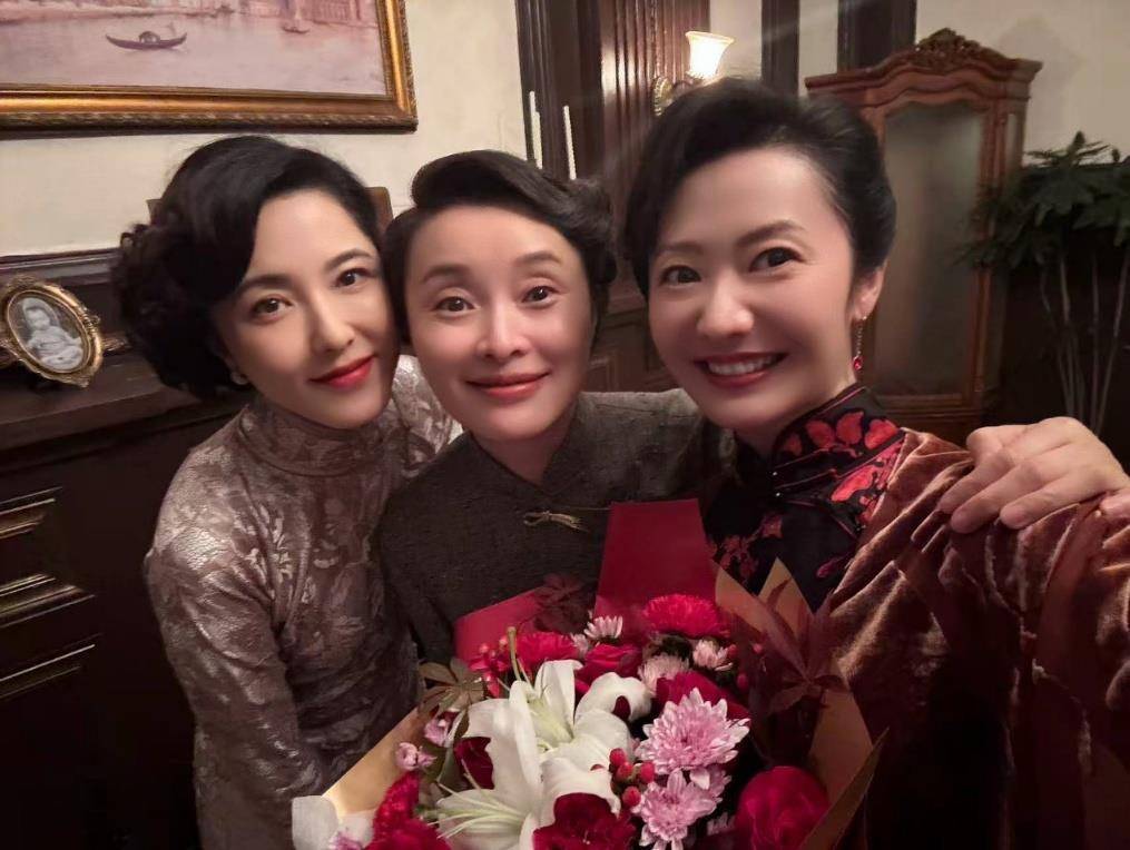 杨斯(右一)与吴越、曾黎在片场合影